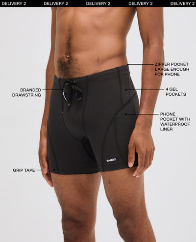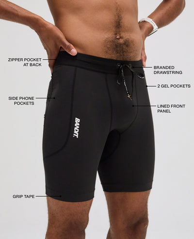 Gripper tape at the inside hem prevents the shorts from riding up while the internal elastic drawcord at the waistband provides all of the fit and function of our original compression to complete this sleek look.