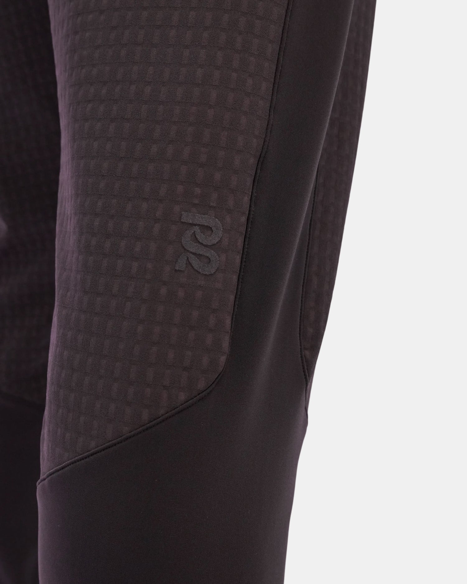 Flocked branding at front thigh and center back yoke.