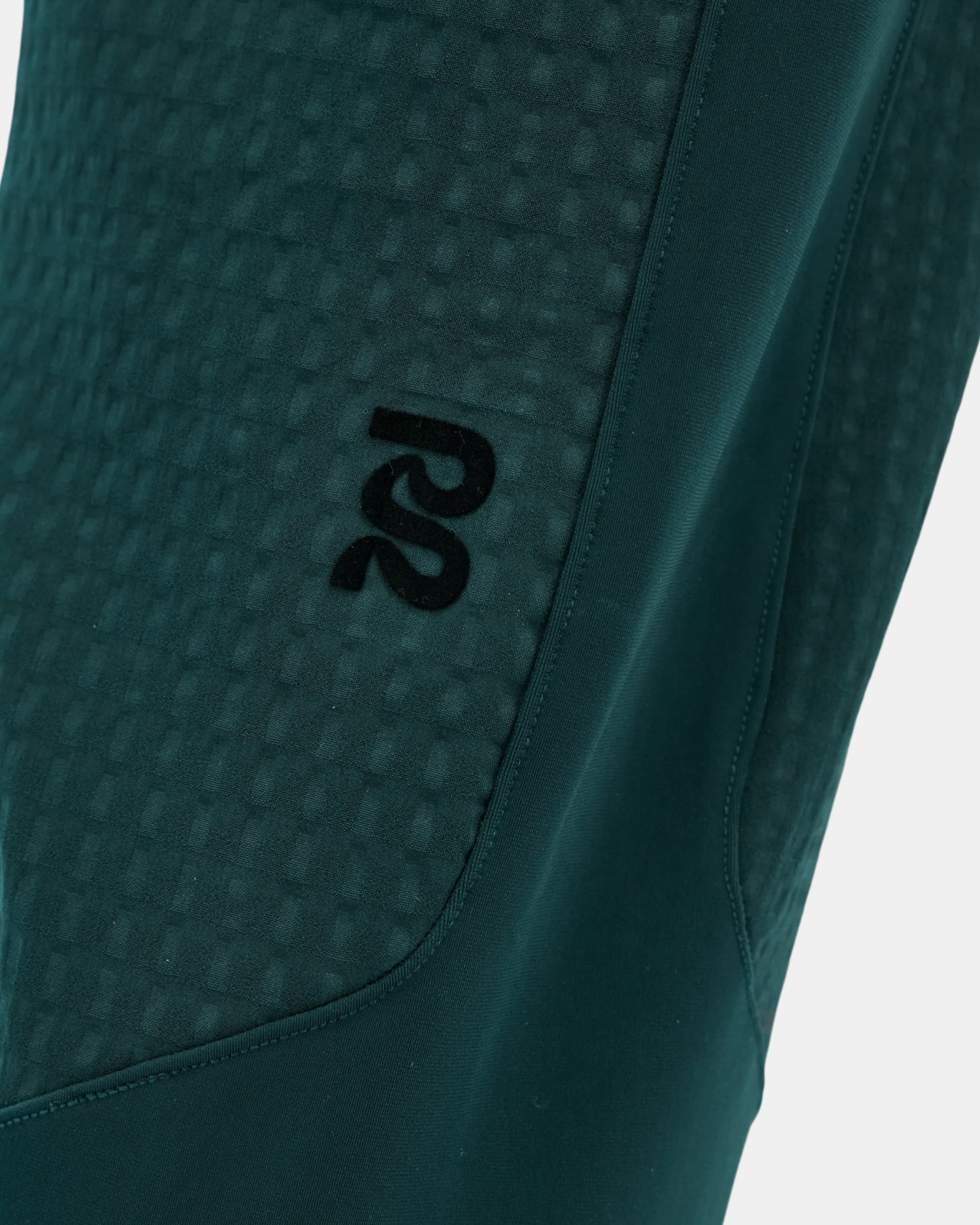 Constructed from two different fabrics, this tapered silhouette employs an ultra brushed stretch woven at the front and back body to keep you warm where you need it most. This fabric protects against the elements, including light rain or snow thanks to the DWR finish. Thoughtfully pieced with a brushed compression knit allowing for unrestricted movement. This fabric is comprised with hollow yarns and does not absorb water. Together these fabrics allow for ultimate warmth while still offering sweatwicking, breathability, and insulation.