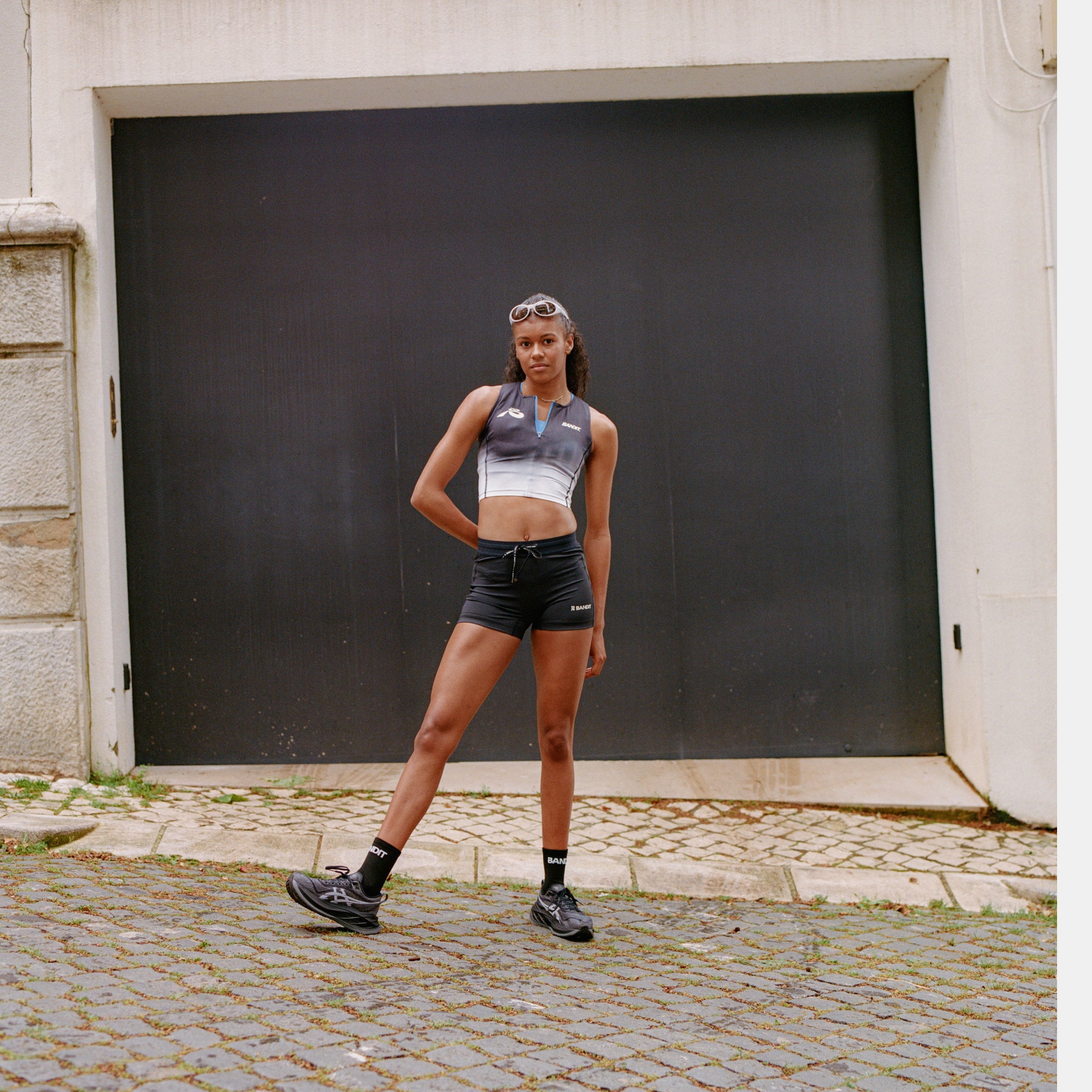 Our signature race crop now with updated pocketing: 4 gel, 1 phone at center-back. Constructed with a built-in bra with mesh-piecing and a quarter-zipper for breathability. Ultralight, airy, and anti-chafing. Trusted in the Paris 2024 Olympics.