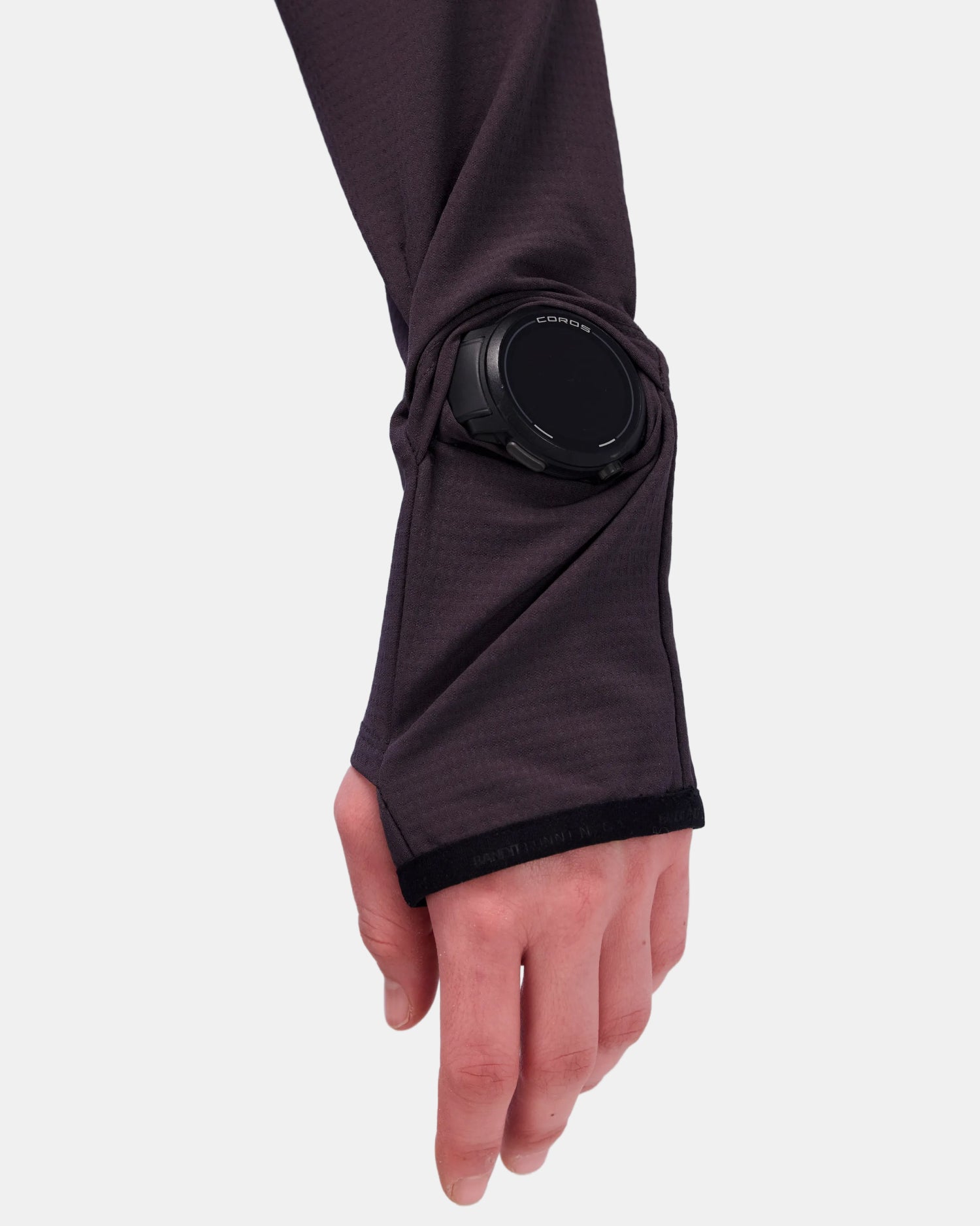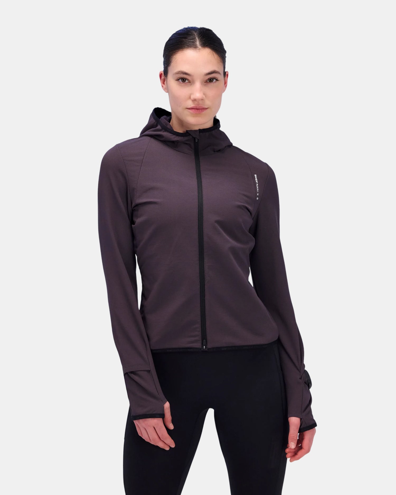 Details include front zipper pockets that is perfect to stash your phone, keys, and gels. Branded elastic binding at hem, sleeve openings, ponytail window and hood help to provide the perfect fit. Our branded 2 way zipper at center front provides additional mobility and versatility, while the watch window and thumbhole combo at sleeve provides easy access to your watch when tracking splits during any workout.