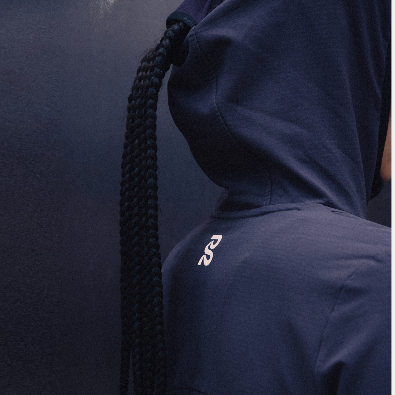 Details include front zipper pockets that is perfect to stash your phone, keys, and gels. Branded elastic binding at hem, sleeve openings, ponytail window and hood help to provide the perfect fit. Our branded 2 way zipper at center front provides additional mobility and versatility, while the watch window and thumbhole combo at sleeve provides easy access to your watch when tracking splits during any workout.
