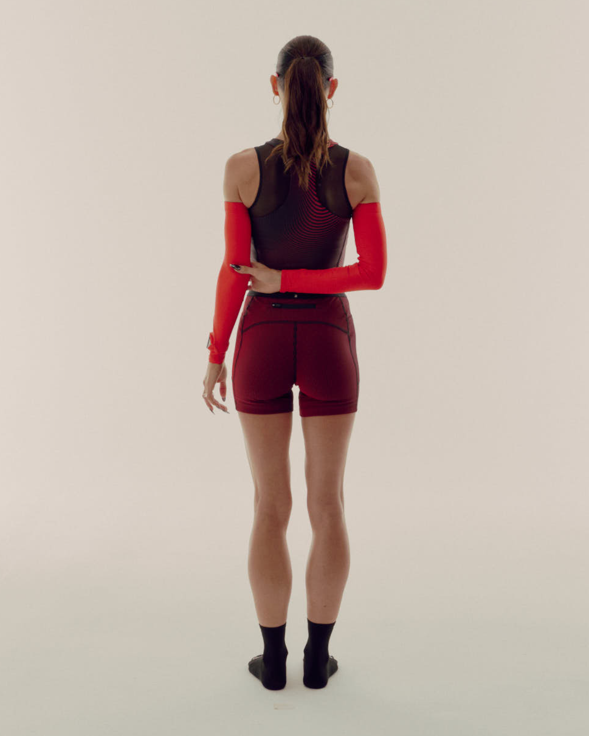 Multiple pockets, zero telling. Sweat-proof phone and gel-sized pockets all designed to disappear when you run.