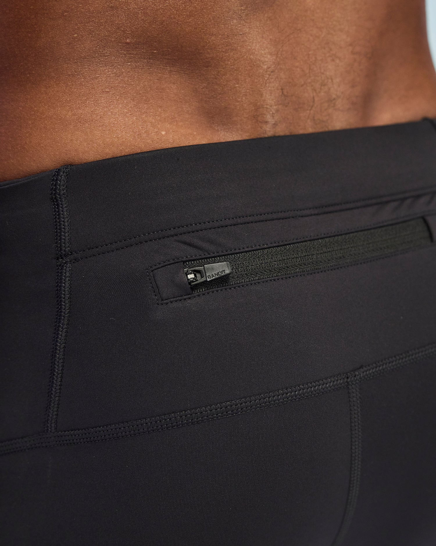 Multiple pockets, zero telling. Sweat-proof phone and gel-sized pockets all designed to disappear when you run.