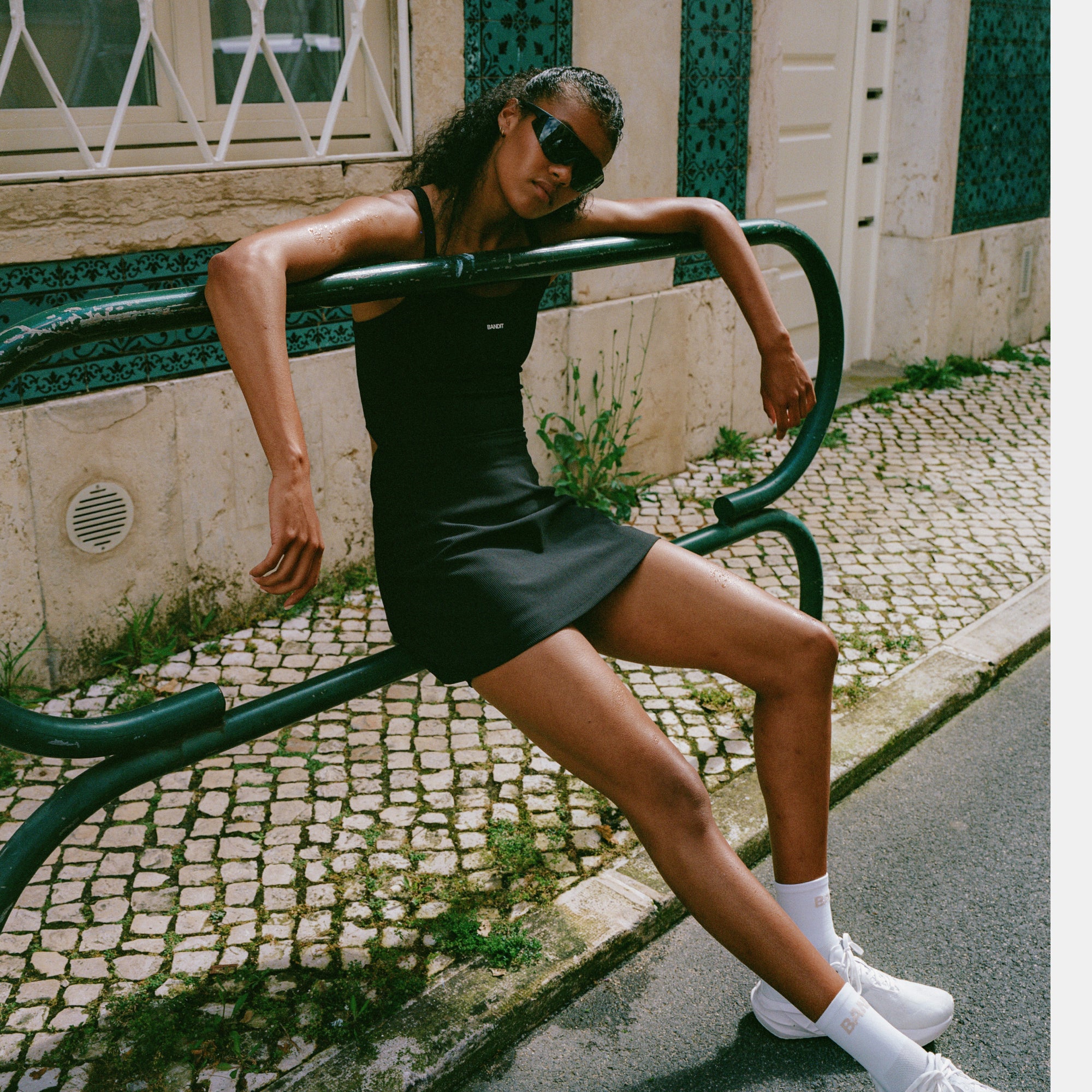 Introducing our new Cadence™ silhouette, the Scoop Neck Run Dress. Constructed with the same fit and support of our one-piece, without sacrificing any key features. Includes a built-in short, disconnected from the back for quick and easy bathroom breaks. Gripper tape on bottom short hems for long-run performance, and pockets on each side panel of the bodice, with side pockets also on each side panel of the short. Completed with a hidden iPhone ready pocket at center-back neckline.