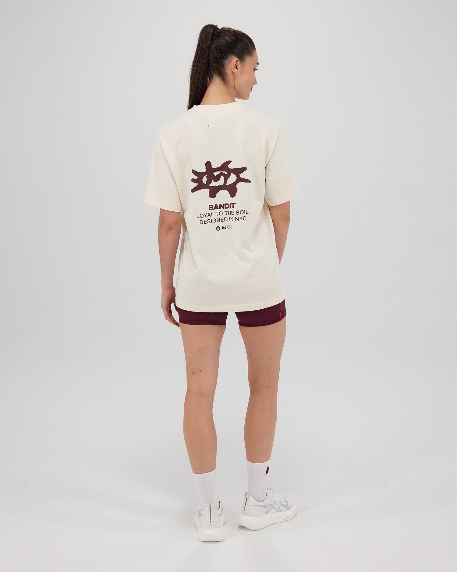 (Note: Video may render dark. Actual color below.) New Fall '25 graphic inspired by NYC with the phrase "Loyal to the Soil". Constructed in 100% combed cotton for the ideal balance of comfort and structure.