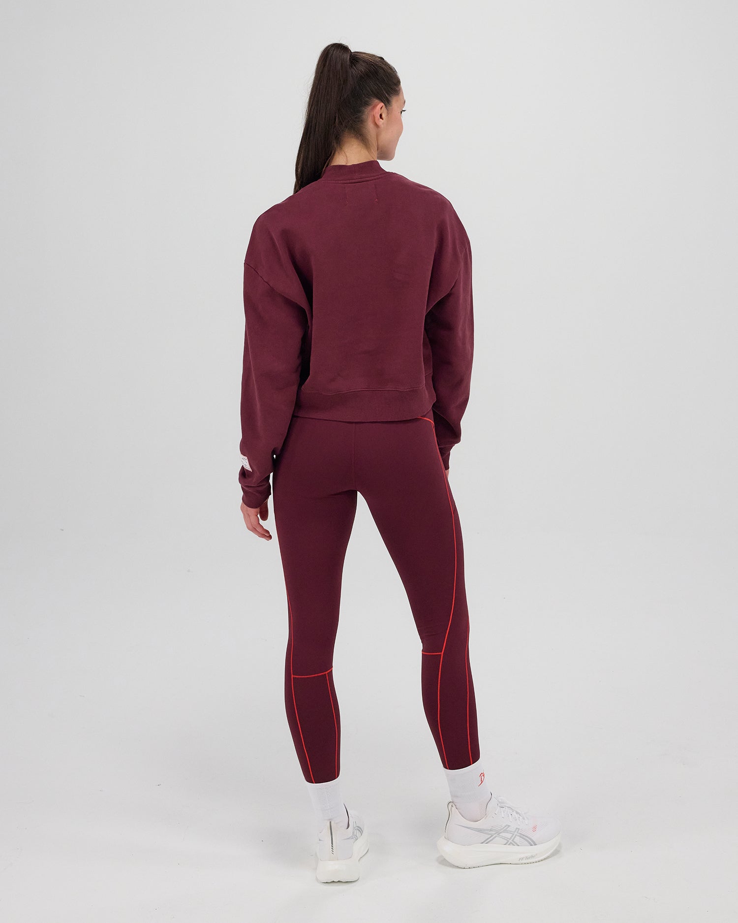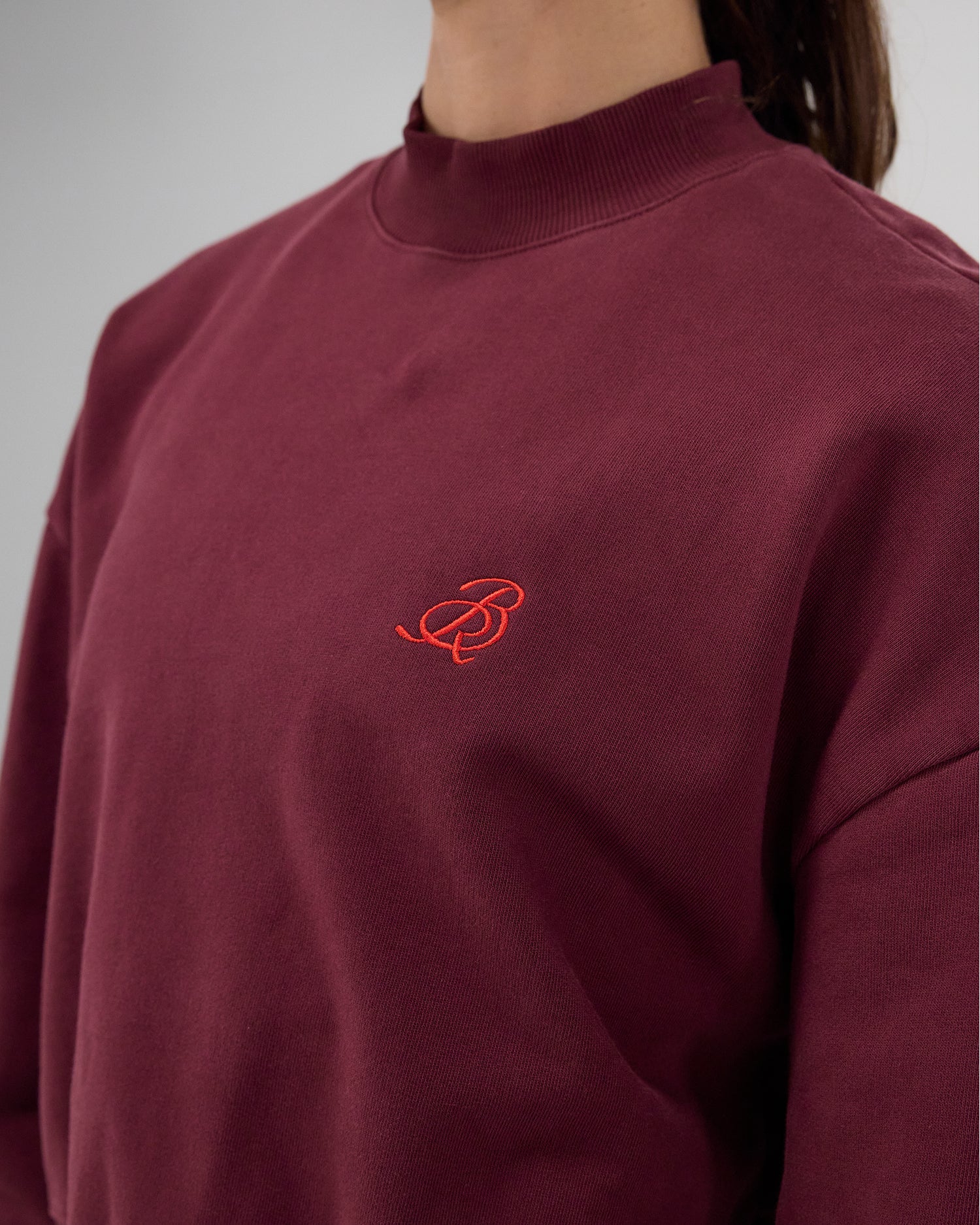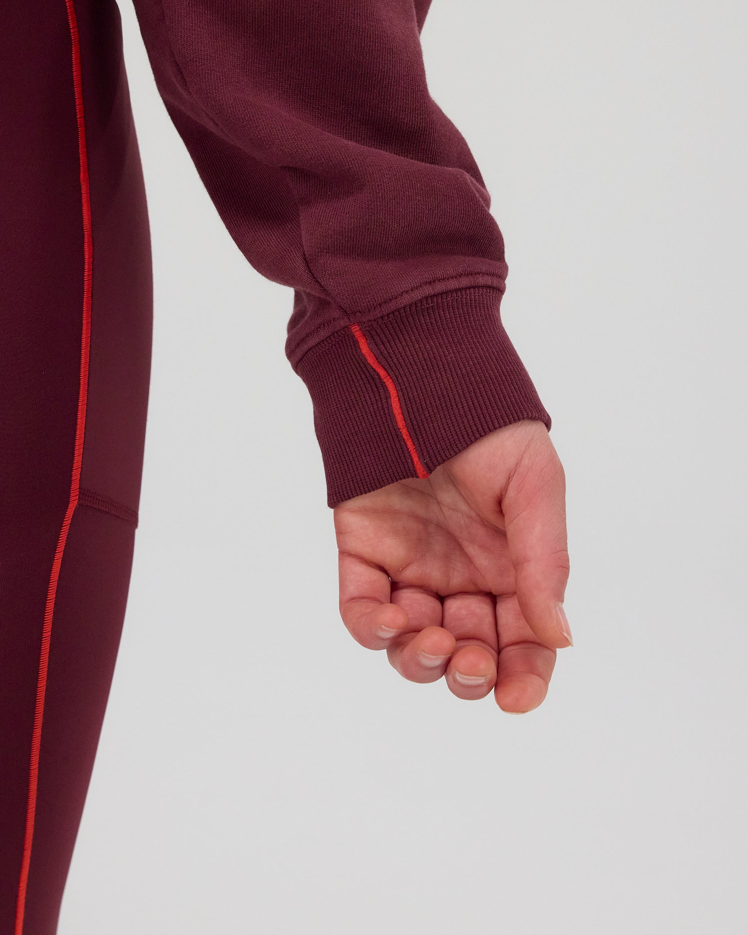 (Note: Video may render dark. Actual color below.) Our classic cotton fleece, now in a shrunken proportion. Rib trim at mockneck, cuffs and hem. Contrast limited edition Fall '25 monogram embroidered at wearer's left chest. Contrast embroidered Current at back hem.