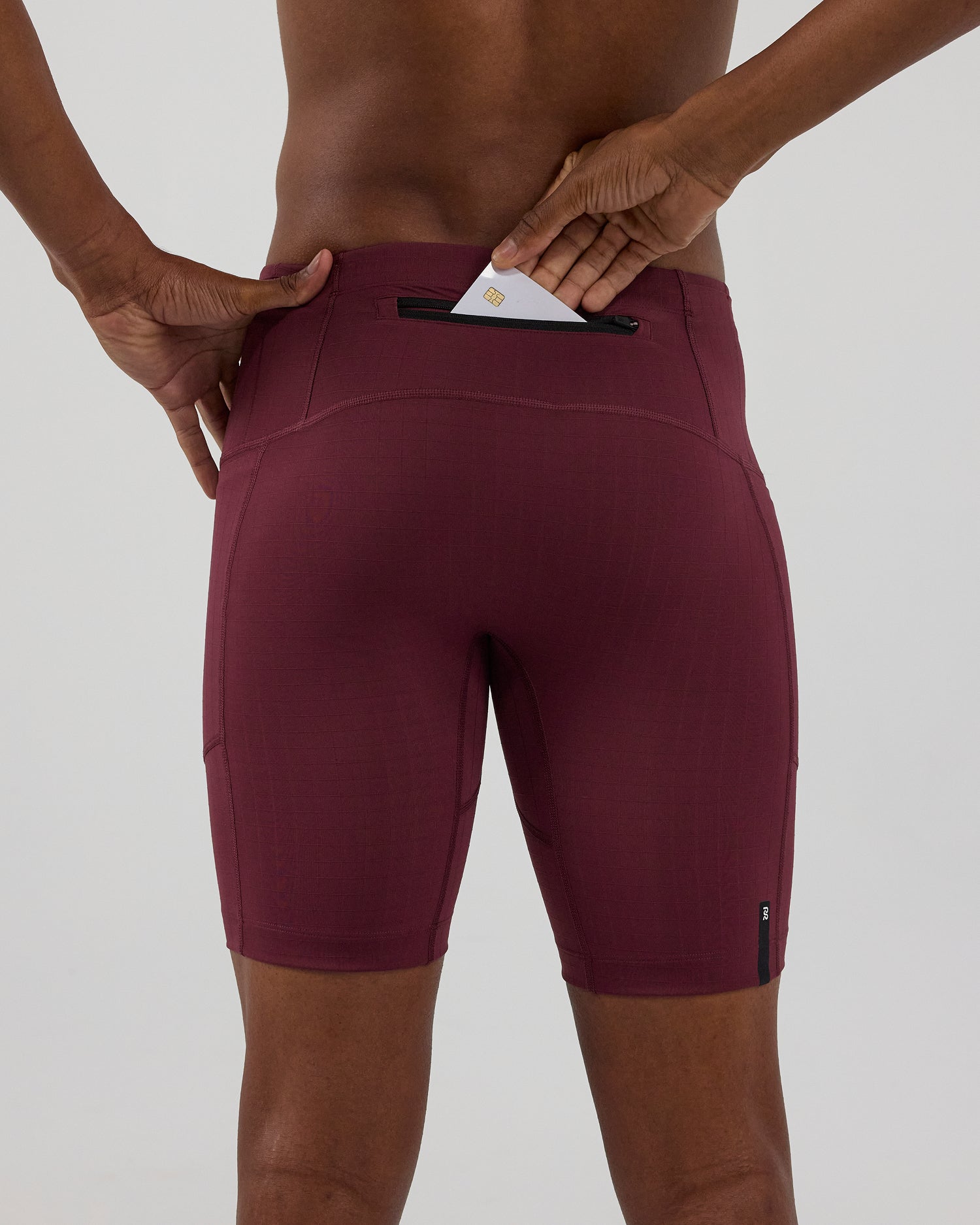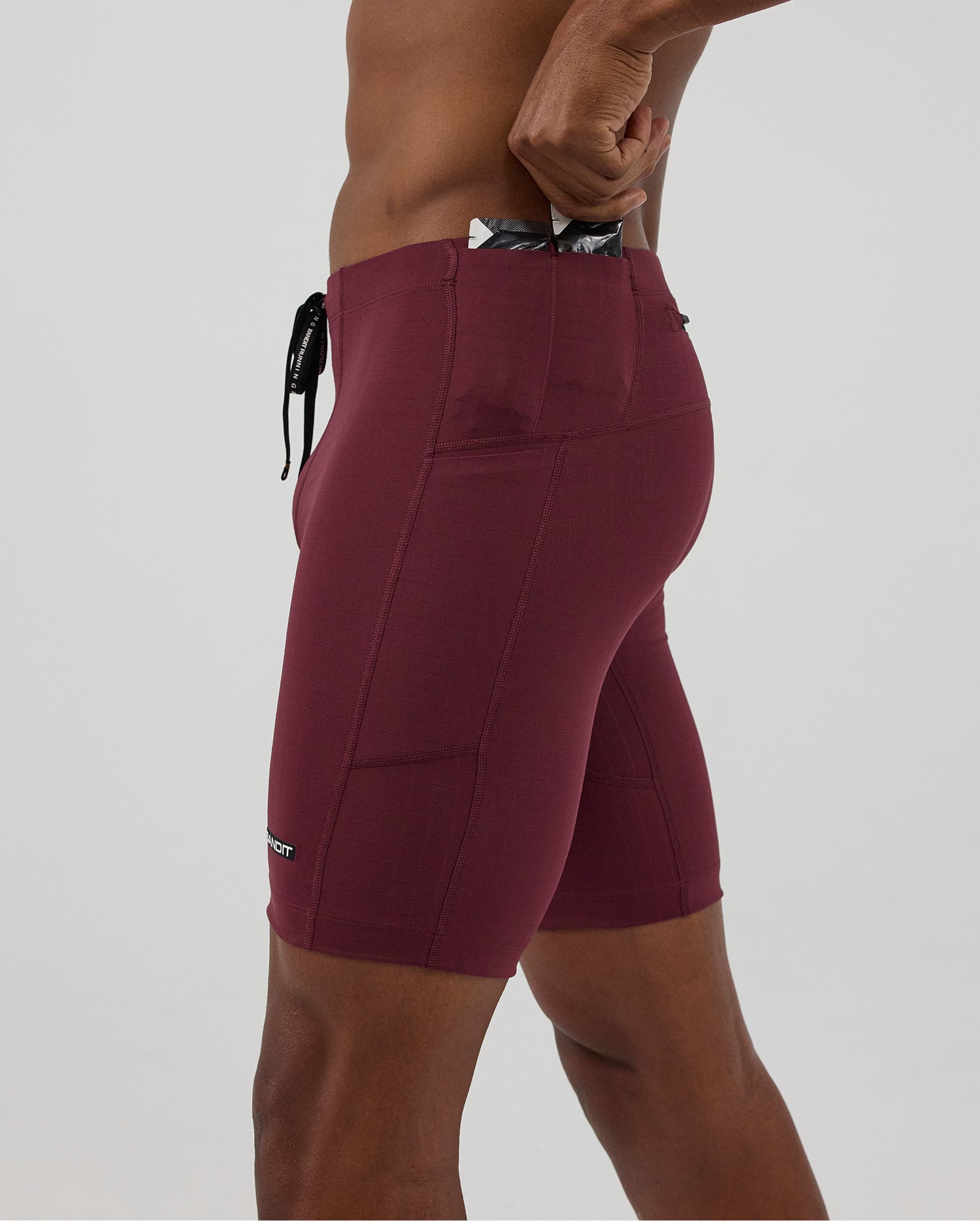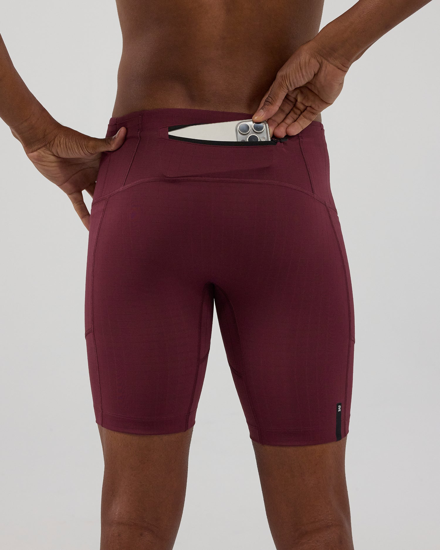 (Note: Video may render dark. Actual color below.) The Next Gen Half Tight in our Gridlock™ fabric, with an optimized gusset, offers 7 pockets: 2 iPhone-sized with waterproof liners, 4 gel-sized, 1 zippered stash. Italian grip tape prevents ride-up, with double-layered front fabric, a drawstring, silicone patch and clamp at wearer's right back leg.