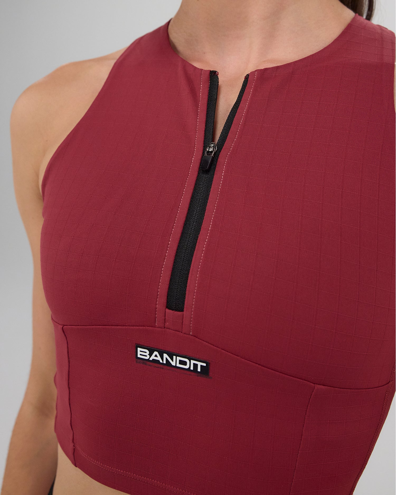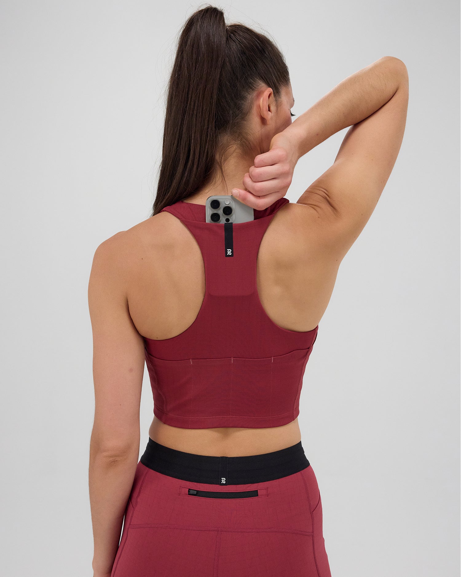 (Note: Video may render dark. Actual color below.) Our signature Gridlock™ compression fabric, now in our zip front race crop silhouette. Constructed with a built in bra for a supportive, medium impact fit. The center front zipper provides versatile styling and coverage options. This silhouette is constructed with 7 pockets: our Time Magazine Award Winning 4 gel pocketing system, and 3 phone pockets with waterproof liner. Silicone branded patch at front and center back.