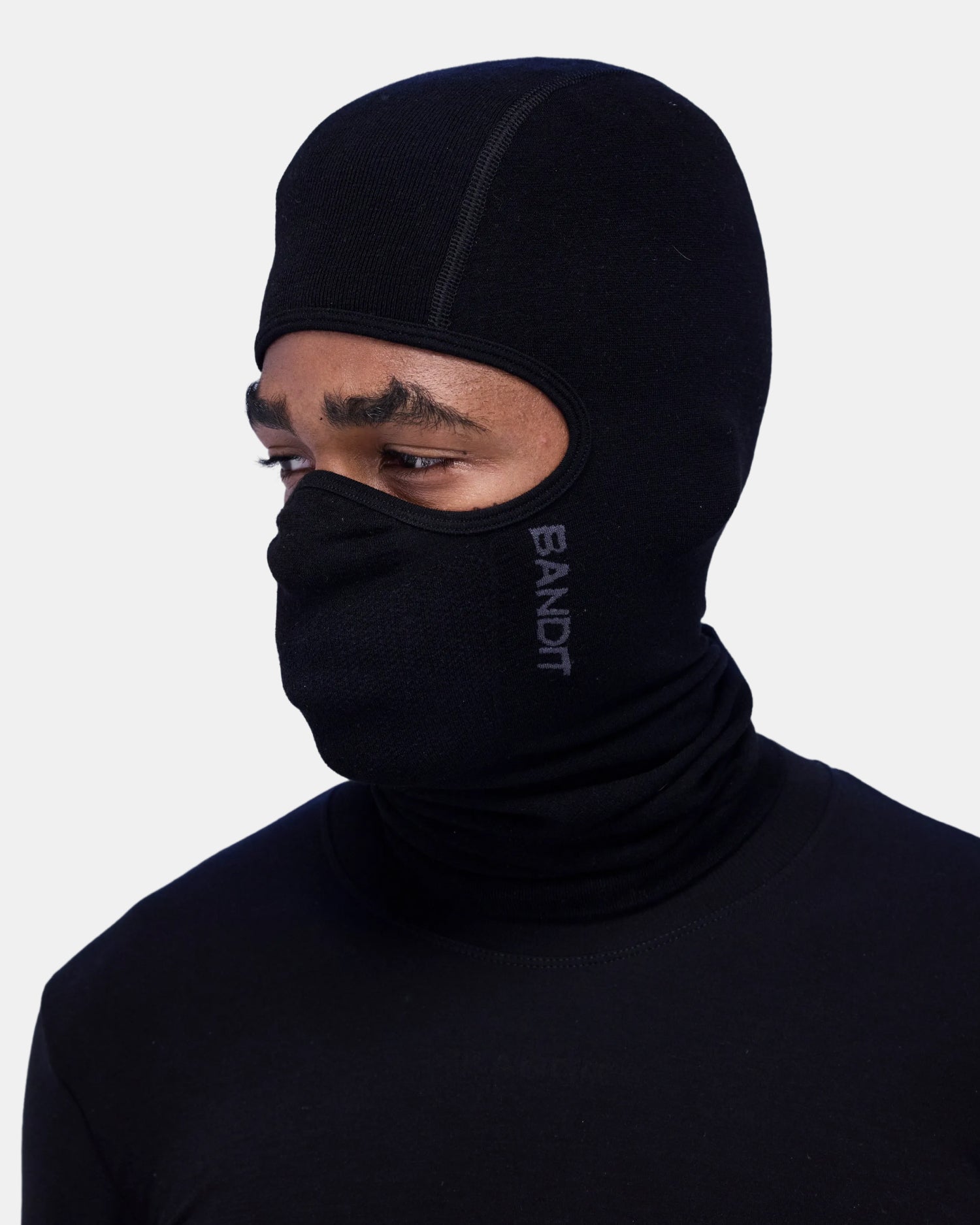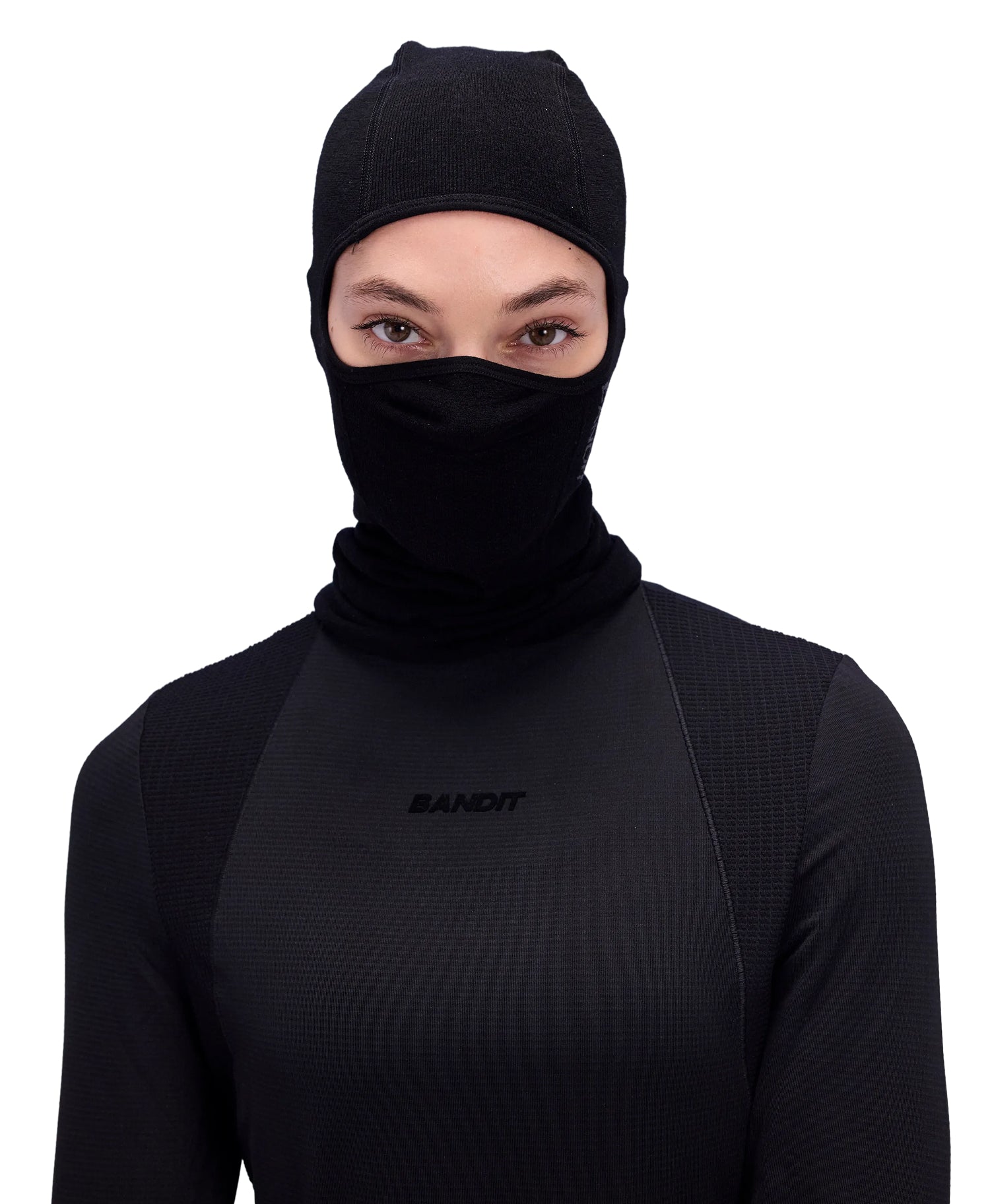 Coverage at the face, nose, and neck against the frigid winter weather. This snug fit hugs the head, while the mesh knit structures add an element of breathability and the rib knit at center back adds textural interest.