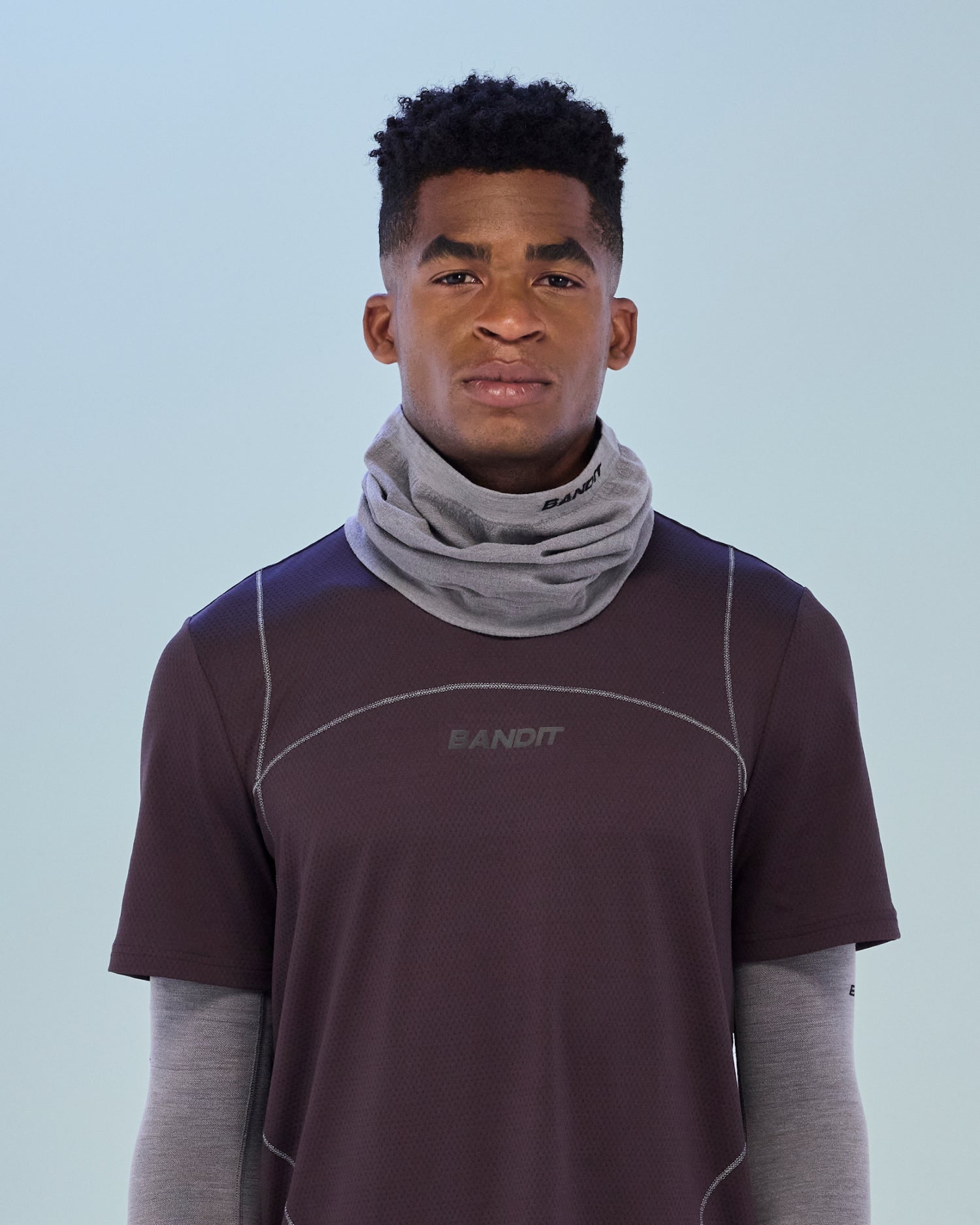 Introducing our Seamless Merino Neck Gaiter, the perfect addition for cold weather runs. Provides coverage at the bottom face, nose, and neck against the frigid winter weather. Knitted seasonal logo at front body with knitted rib detail at center back.