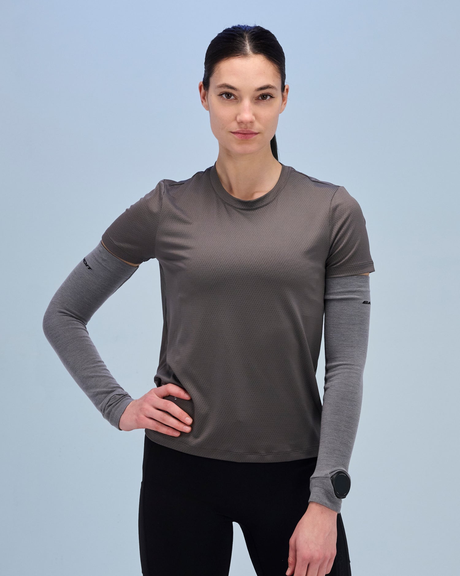 An evolution of our running sleeves, now updated for the winter months in a seamless merino wool blend construction.