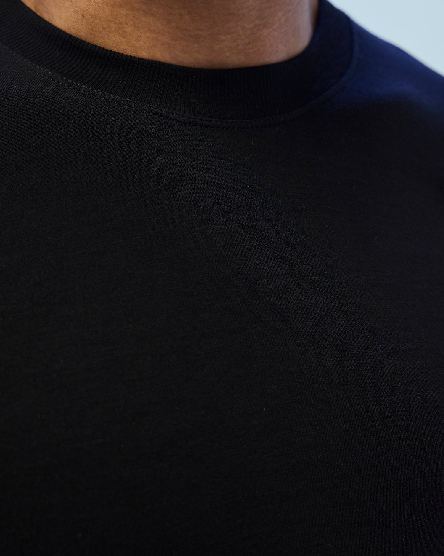 Knitted branding at rib neckline and back body.