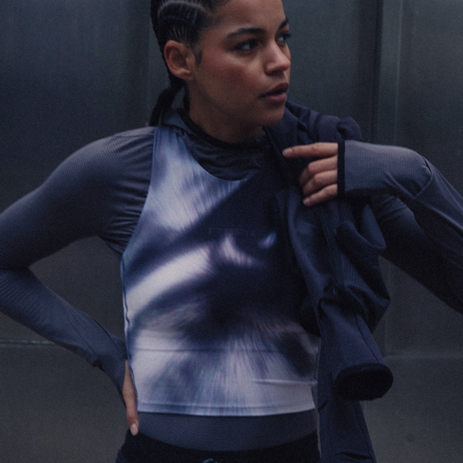 Double layer, matte-finished Stamina™ fabric, all-ways versatile stretch for an optimal combination of support and mobility