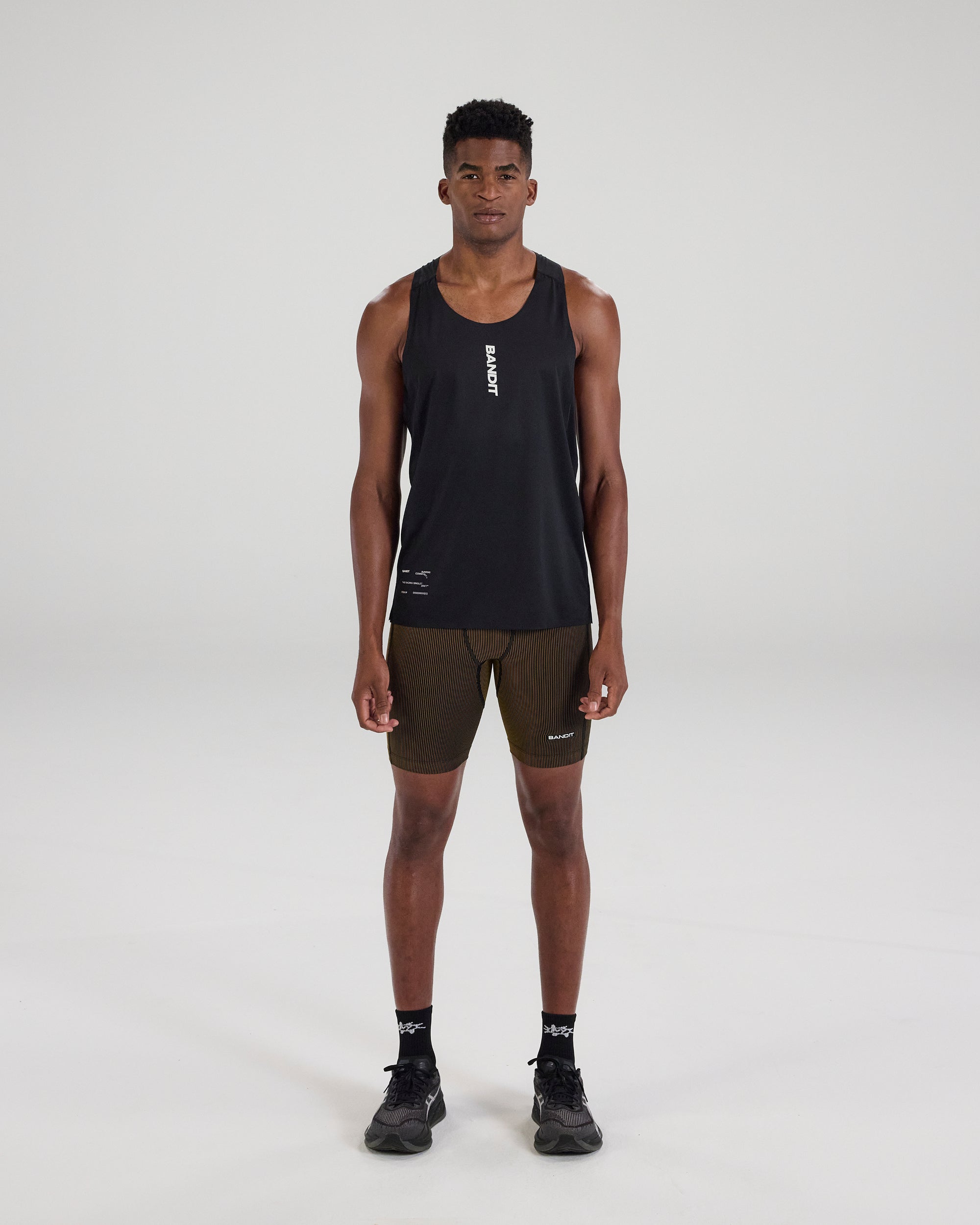 Multiple pockets, zero telling. Sweat-proof phone and gel-sized pockets all designed to disappear when you run.