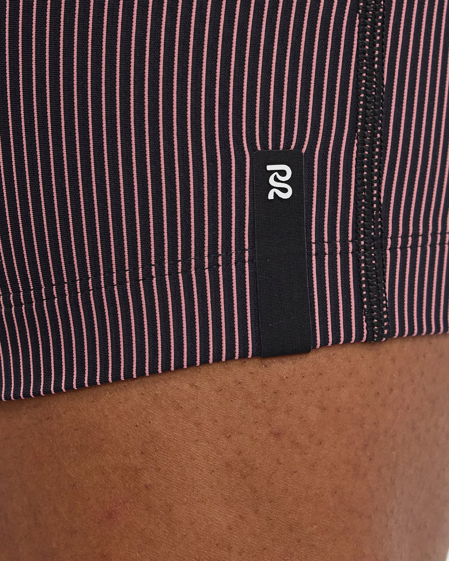 (Note: Video may render dark. Actual color below.) Our classic Next Gen Half Tight fit, in our new ribbed Striped Cadence™ performance fabric with an optimized gusset shape for superior fit. Constructed with 7 total pockets - 2 iPhone-sized at outside thigh with waterproof liner, 4 gel-sized at back waistband, and 1 zippered back stash pocket at back yoke. Grip tape at front and back bottom hem to prevent ride-up without squeezing. Double-layered front fabric for extra coverage. Finished with custom branded drawstring, silicone branding patch at front left leg and camp at wearer's right back leg. New Fall '25 colorway.