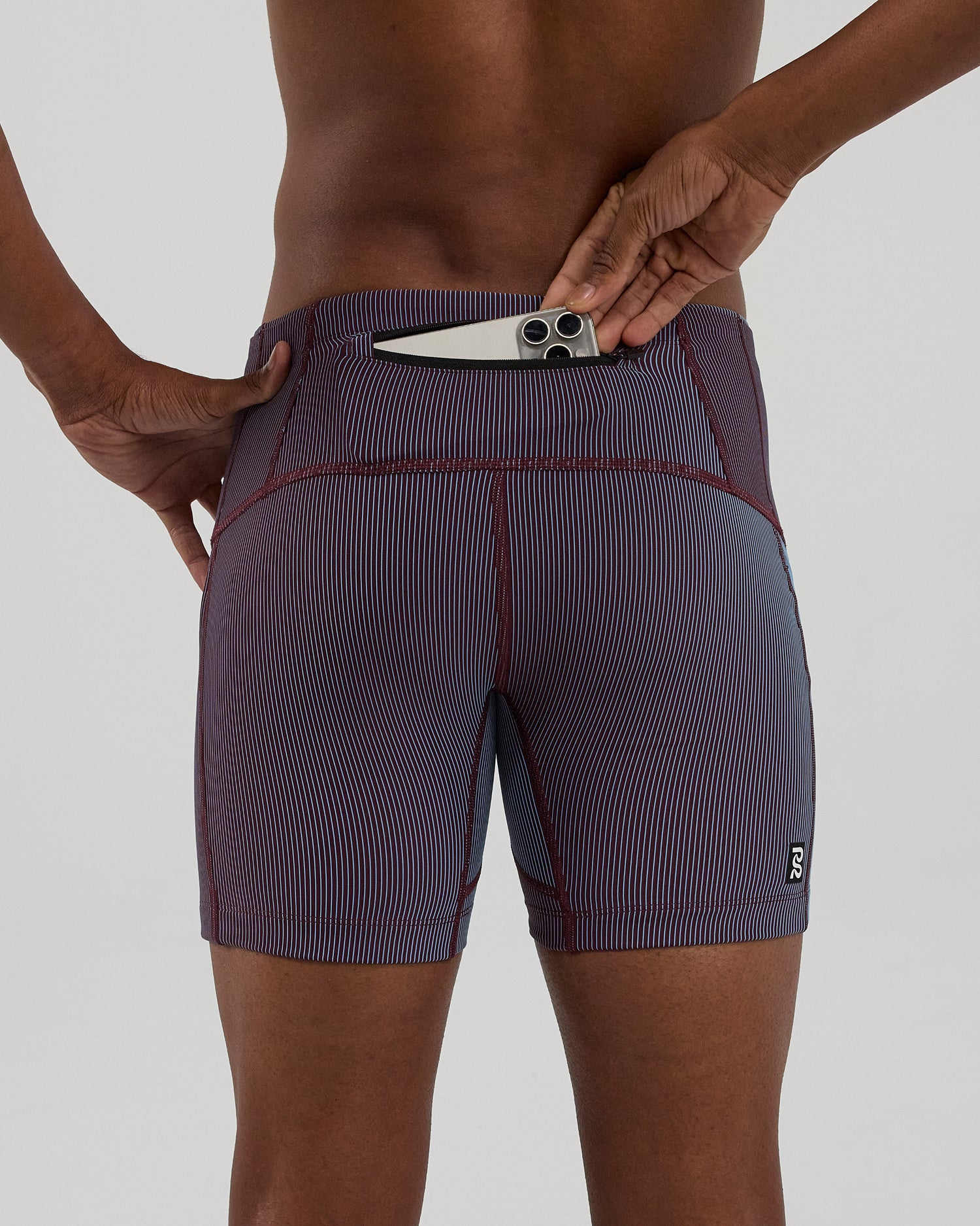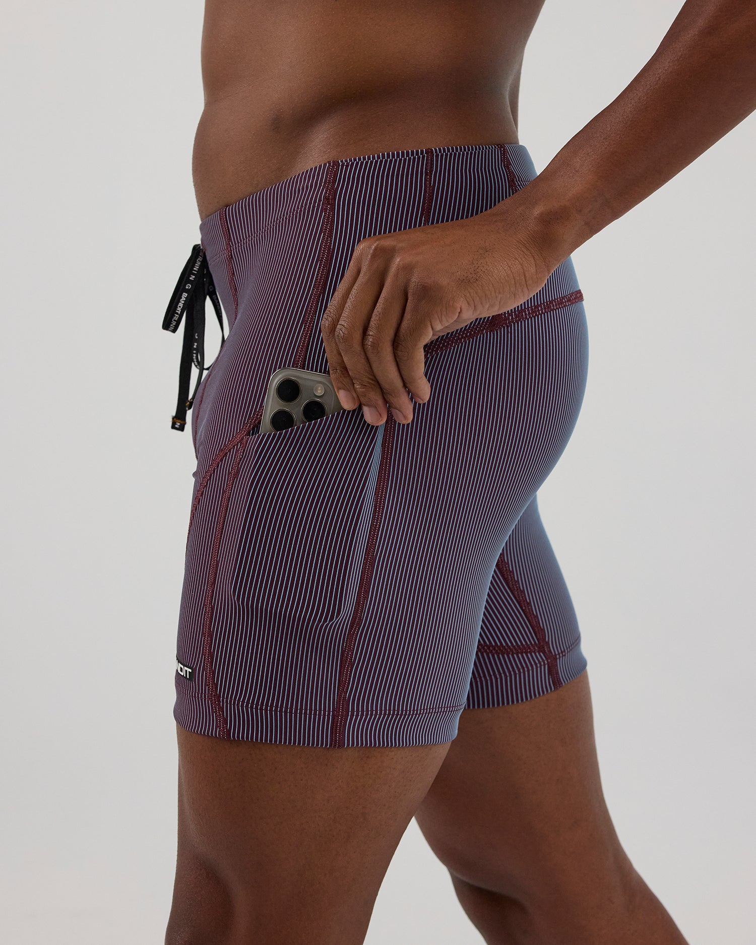 (Note: Video may render dark. Actual color below.) Our classic Next Gen Half Tight fit, in our new ribbed Striped Cadence™ performance fabric with an optimized gusset shape for superior fit. Constructed with 7 total pockets - 2 iPhone-sized at outside thigh with waterproof liner, 4 gel-sized at back waistband, and 1 zippered back stash pocket at back yoke. Grip tape at front and back bottom hem to prevent ride-up without squeezing. Double-layered front fabric for extra coverage. Finished with custom branded drawstring, silicone branding patch at front left leg and camp at wearer's right back leg. New Fall '25 colorway.