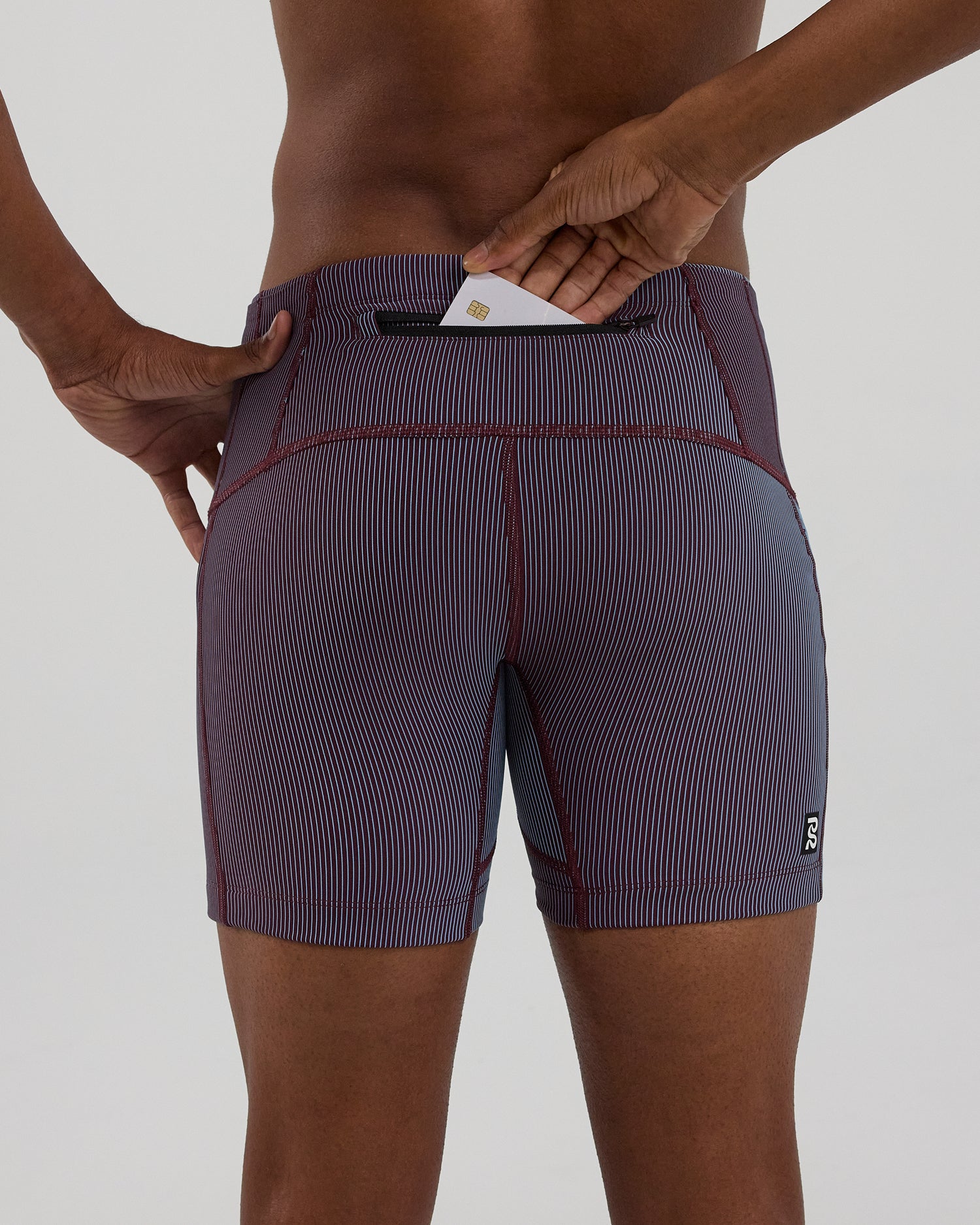 Striped Cadence™ 7 Pocket Quarter Tights - Fig / Vintage Blue