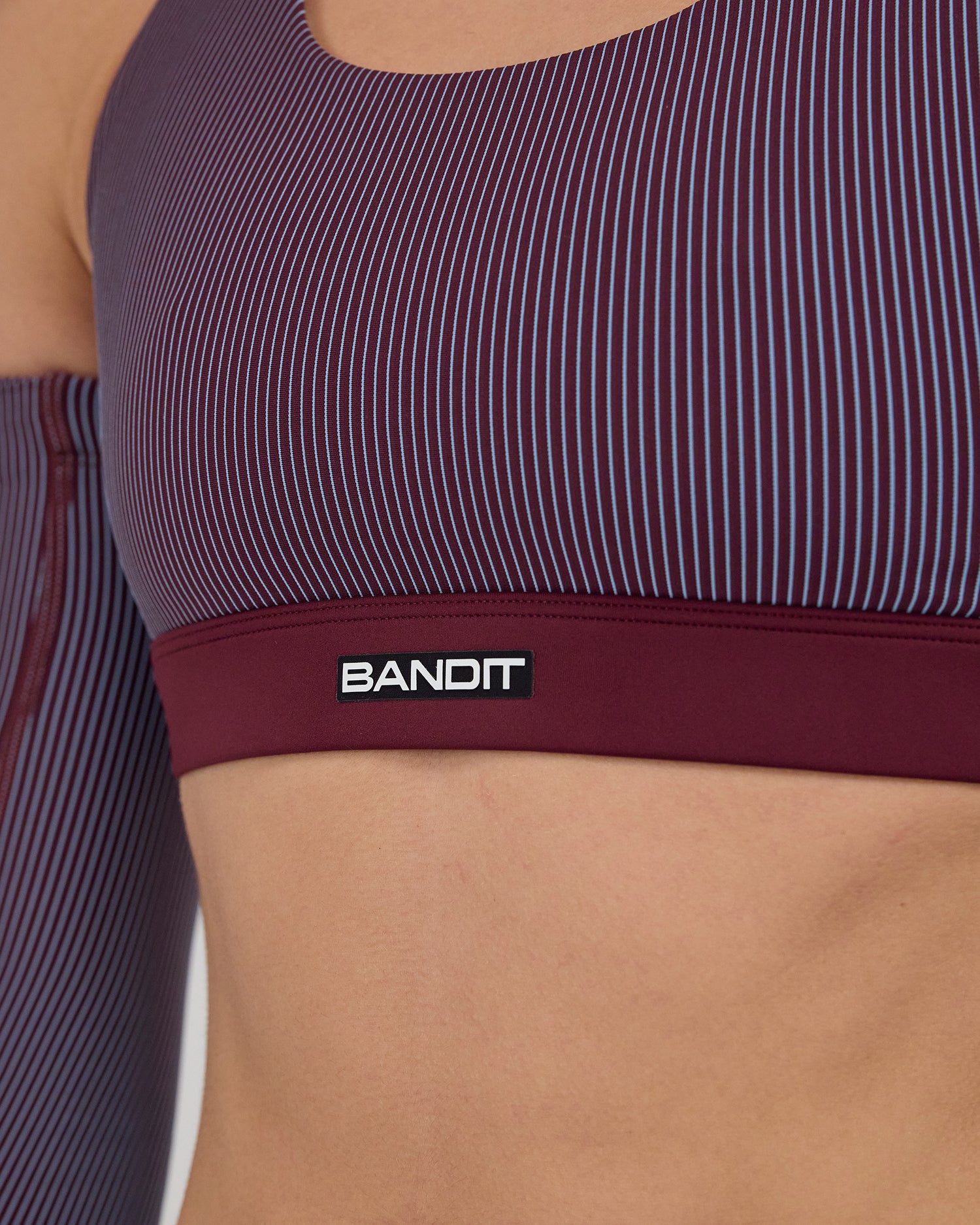 Striped Cadence™ Scoop Neck Run Bra - Fig / Vintage Blue
