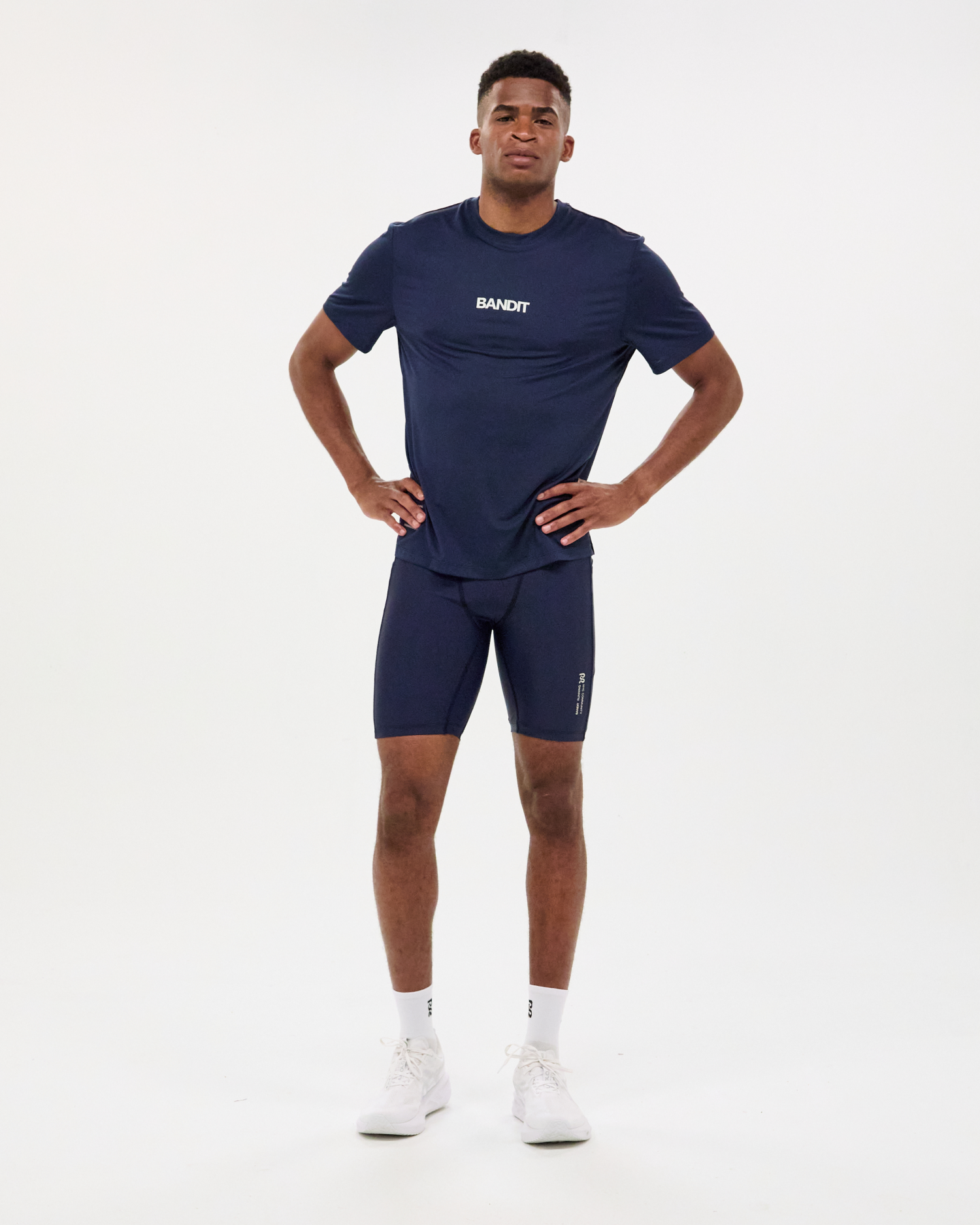 Our #1 best selling men's product, the Superbeam™ Half Tights, in Black.