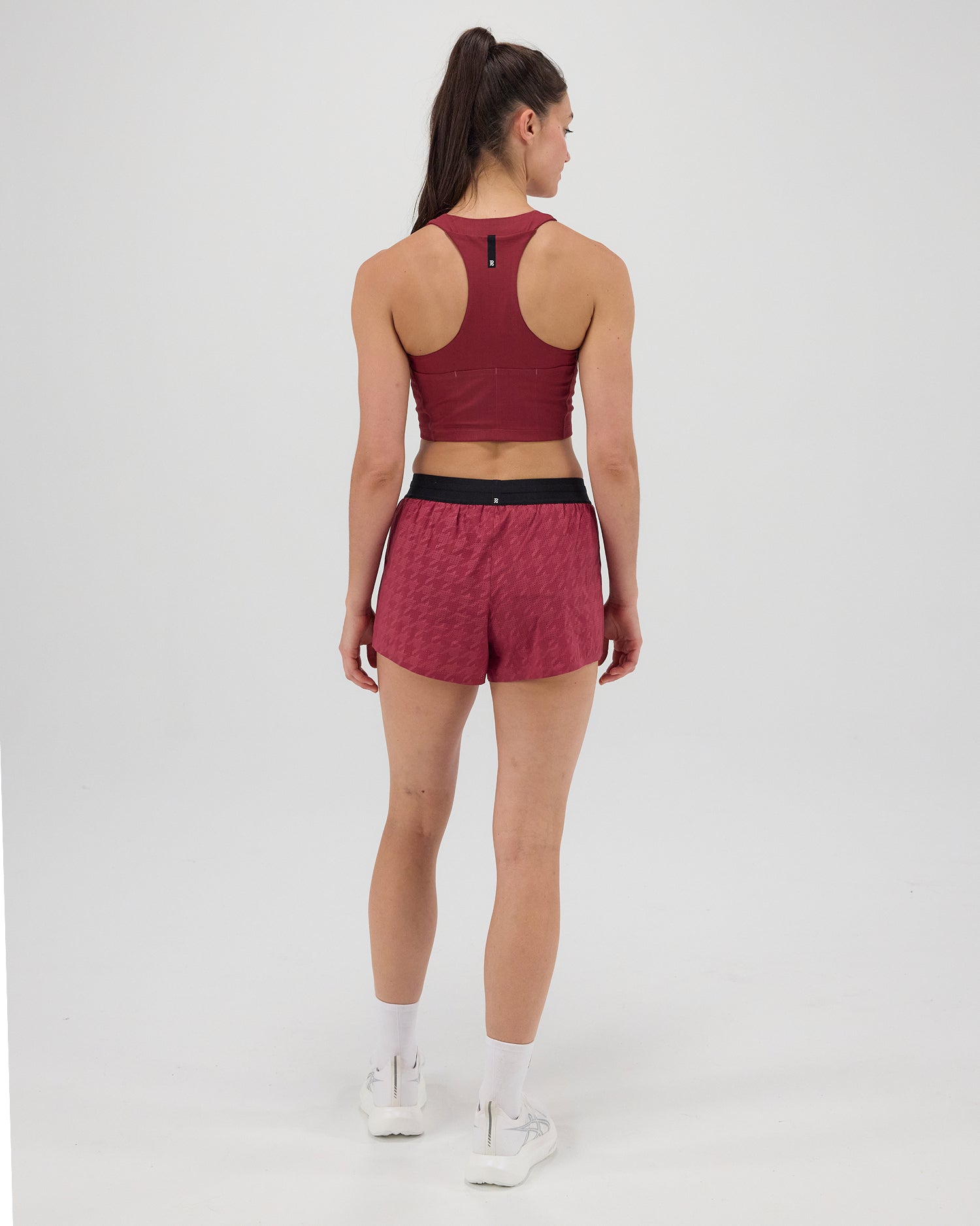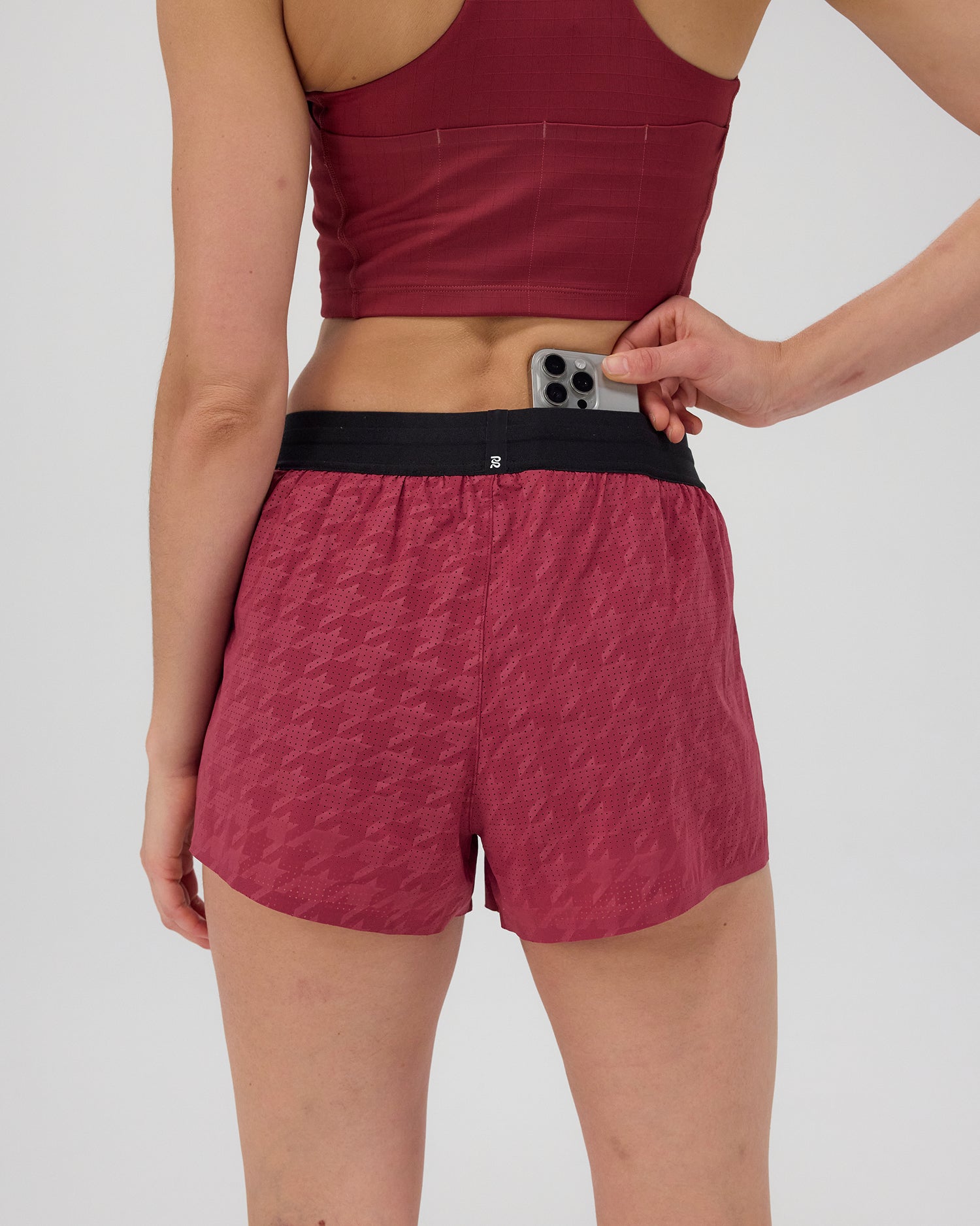 (Note: Video may render dark. Actual color below.) Optimized for high performance with the features that matter, the Vento™ 3" Splitty Short with an ultra-soft built in brief. Storage system includes 5 pockets: 3 gel, 1 phone with waterproof liner, 1 key. Fully perforated with a water-repellent finish, bonded split, reflective branding, and custom waistband with drawstring. Updated with a subtle heat embossed herringbone pattern for Fall '25.