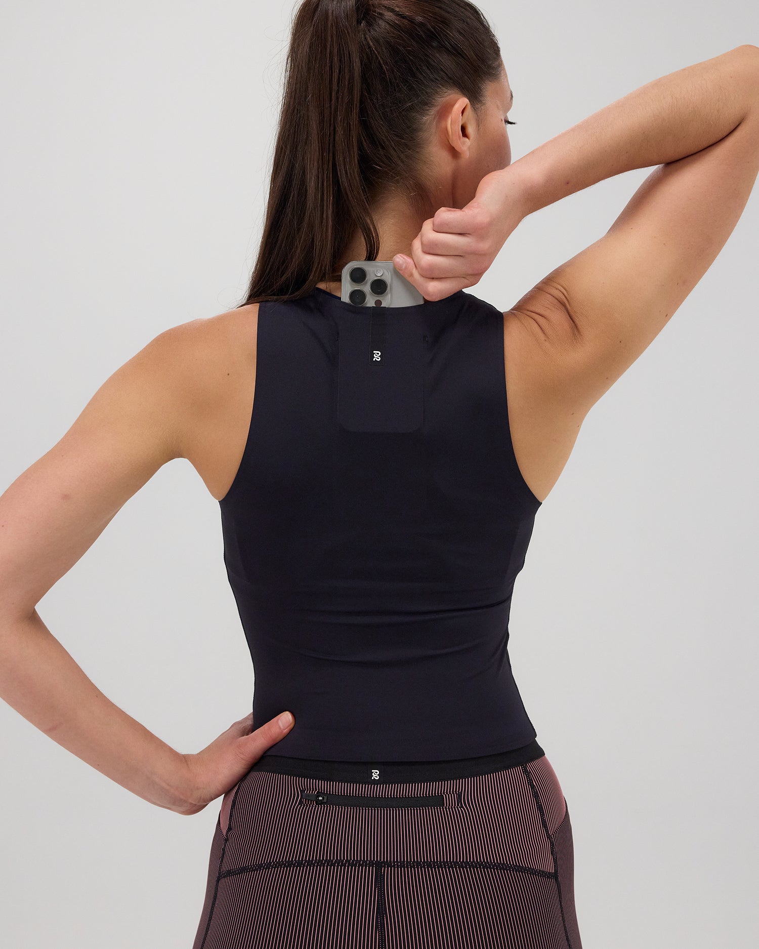 (Note: Video may render dark. Actual color below.) Introducing our Adapto™ Distance Tank, new for Fall '25. Constructed in our buttery soft compression, this four-way stretch fabric allows for maximum elasticity and freedom of movement, giving both support and breathability. The clean Acrofuse™ finishing at the neckline and armholes reduces any chance of chafing while giving an elevated, clean aesthetic. The hidden internal phone pocket allows the silhouette to remain simplified, while branding is kept to a minimum with a small patch at the front hem.